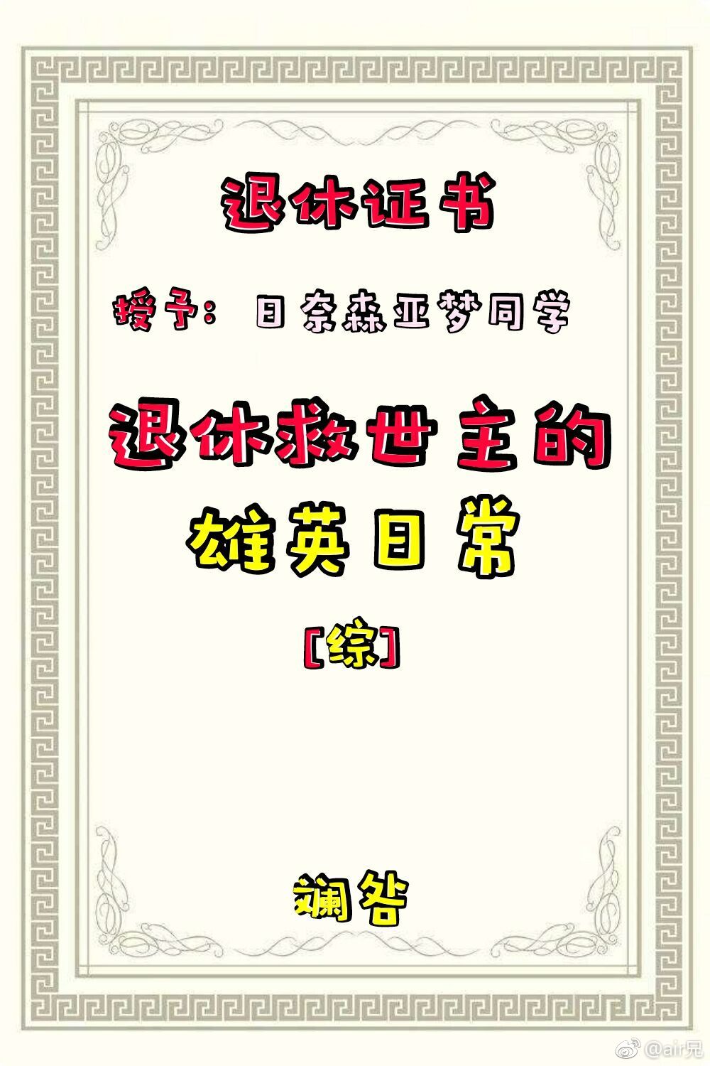 日奈森亚梦其人,某少女番女主,在圣夜小学担任joker,以守护人们的心灵之蛋为己任。 本应该是这样的,直到—— 在经历了守护蛋被捏爆,家人被敌方家族围殴致死,灵魂宝石碎裂,和没鼻子大魔王大战三百回合,在画风不同的世界里连绝招都不能念的大杀特杀,被某个鸡蛋脑袋养育一段时间之后,虽然头发和三观还在,只是画风再也拉不回来了。 本以为终于回归了自己的世界过上了普通的日常的日奈森亚梦(死鱼眼)所以‘个性’到底是个什么东西啊喂,齐木小哥说的对啊,我就想要个普通的日常怎么那么难啊!!普通一拳! 以上出场人物均不会在文中出现。(误) ①ooc警告(超级重点) ②cp未定欢迎买股,可能谈不只一次的恋爱,也有可能就不谈 ③我的脑子不好用XD,bug很多,能无视的就不要细想,接受不了的我们来个爱的吻别 ④第一人称预警
